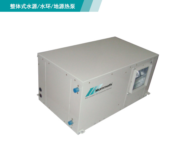 整體式/分離式水源(地下水工況,水環(huán)工況,地下環(huán)路工況)熱泵機(jī)組以電作為動(dòng)力,采用系統(tǒng)循環(huán)水,從水井、湖泊、河流、海洋中抽取的水或埋于地下盤(pán)管中循環(huán)流動(dòng)的水為冷(熱)源,經(jīng)室內(nèi)循環(huán)空氣與室內(nèi)機(jī)熱交換器能量轉(zhuǎn)移后,送入所需空調(diào)房間。